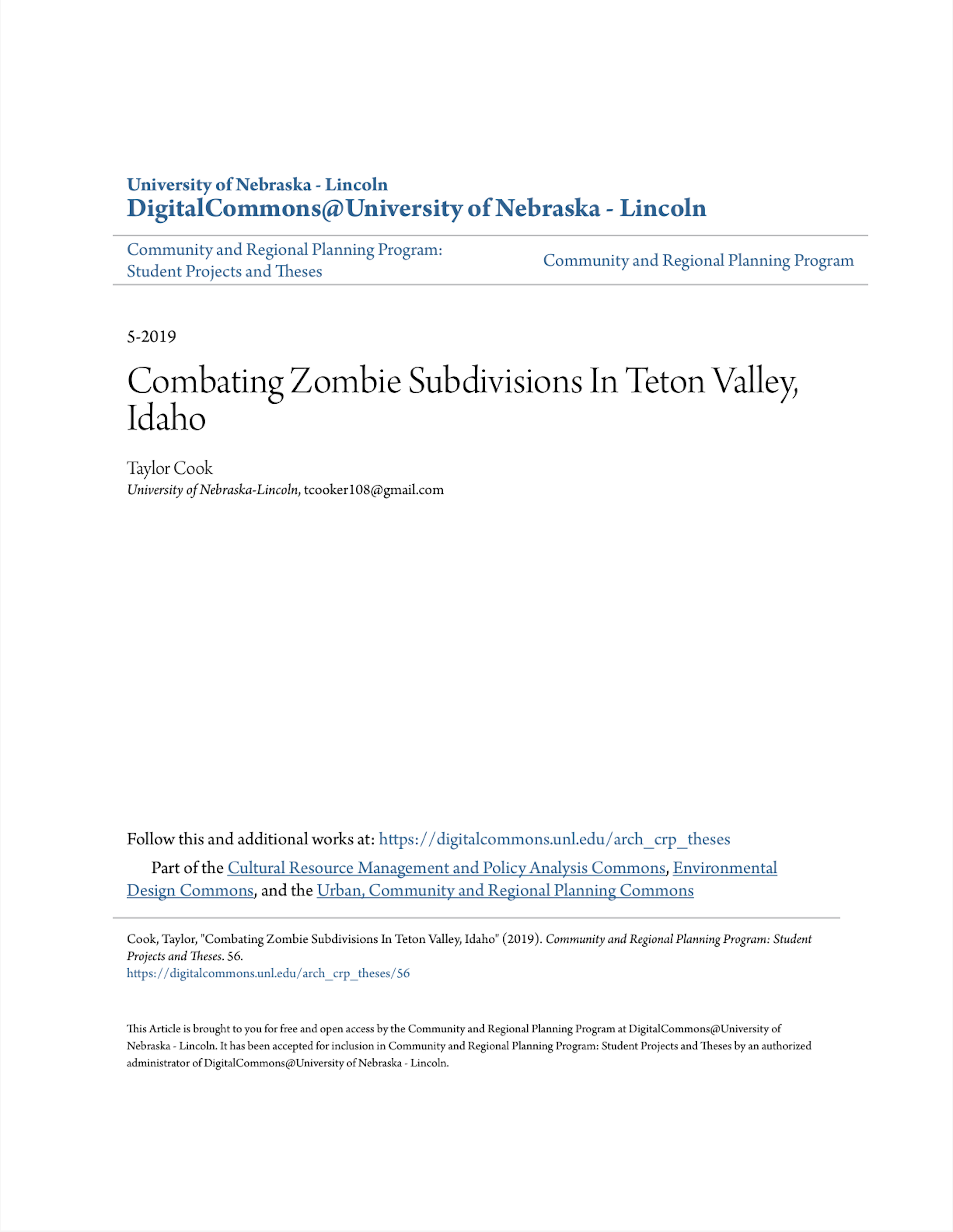 Combating Zombie Subdivisions in Teton County, Idaho is a thesis report by Taylor Cook.
