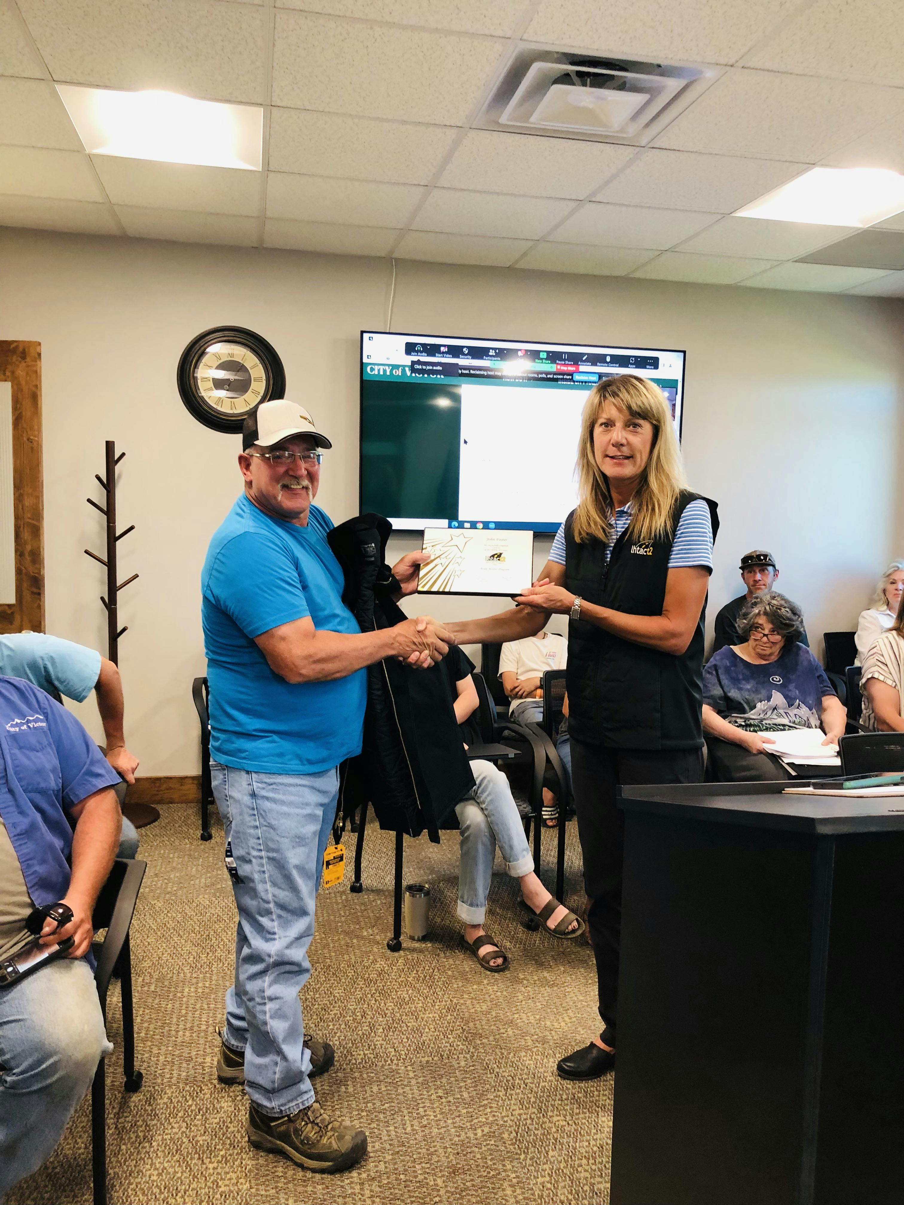 John Foster was awarded with his Road Masters Certificate last night at the Victor City Council meeting through the Local Highway Technical Assistance Council. John has completed the T2 program that consists of Road Scholar- Level I and the Road Master- Lever II. All together John has completed 160 hours of training and 22 courses. John worked for the Town of Jackson Public Works Department for several years and has been with the City of Victor Public Works department for the last 5 years.